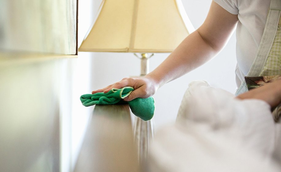 If you wipe lower surfaces first, dust from shelves and furniture edges falls down and you end up cleaning twice. Always start higher: shelves, window sills, table surfaces, then floors.