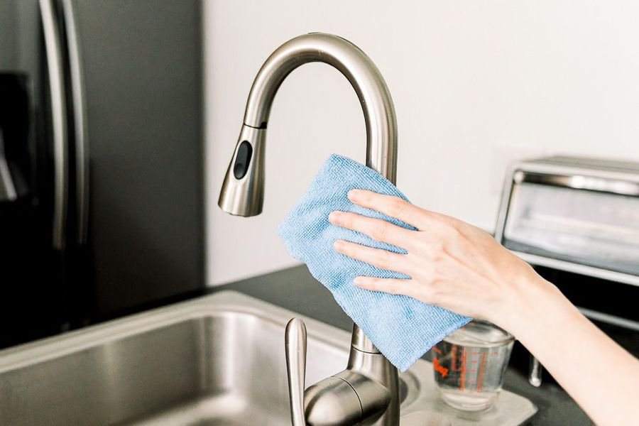 Apply the solution, allow it to sit briefly, then wipe with a soft microfiber cloth. Avoid aggressive scrubbing, which can scratch finishes and make future buildup worse.